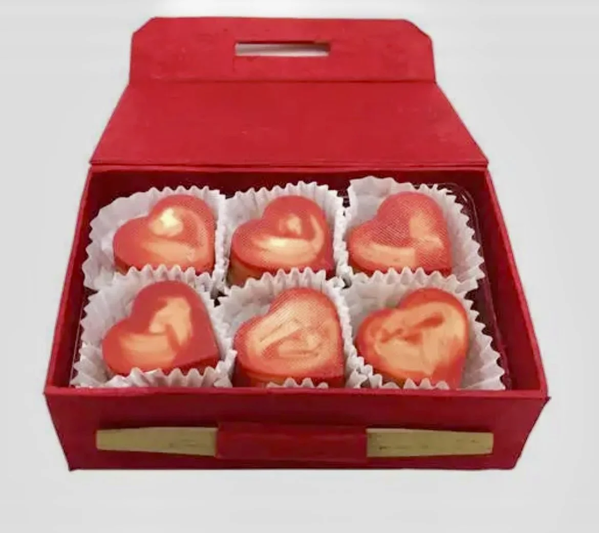Beautiful, hand painted, heart shaped bonbons filled with chewy caramel and sea salt.